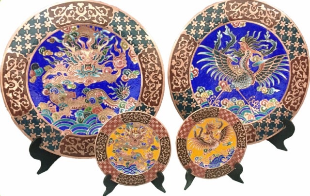 Long Phung porcelain enamel dish set (decorated with dragons and phoenixes) by the group of creators Do Huu Triet, Tran Nam Long and Nguyen Quoc Hieu, from Hue City wins the First prize of the contest