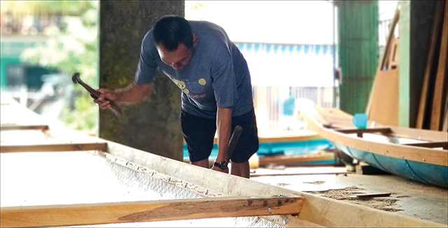 Nguyen Van Tuan is finishing the last stage of a canoe.