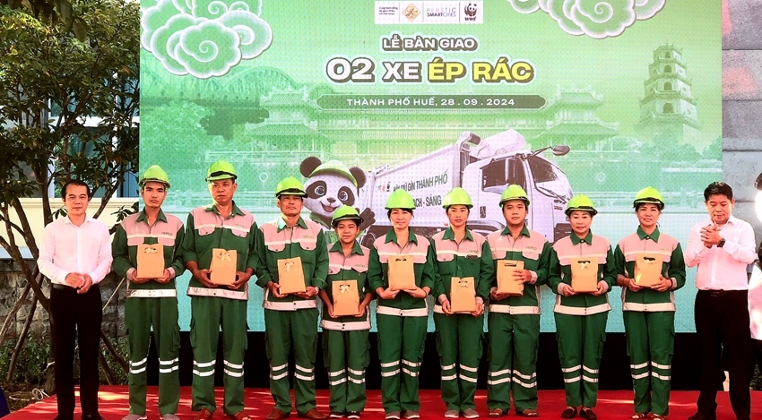 HNN.VN - On the morning of September 29, the project of Hue – Plastic Reduction Urban in the Central region of Vietnam, funded by WWF-Norway (through WWF-Vietnam and received by the People’s Committee of Hue City) in collaboration with the People’s Committee of Hue City organized a ceremony to hand over 2 garbage trucks worth nearly 10 billion VND.