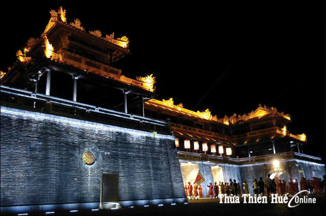 This can be seen in the lighting in the parks on the banks of the Huong river, in front of the Meridian Gate, and ancient architectures such as the gates of Hien Nhon and Chuong Duc, the Pavilion of Edicts, Quoc Hoc Stele... especially the Five-Phoenix Pavilion-The Meridian Gate (Hue Royal Palace).