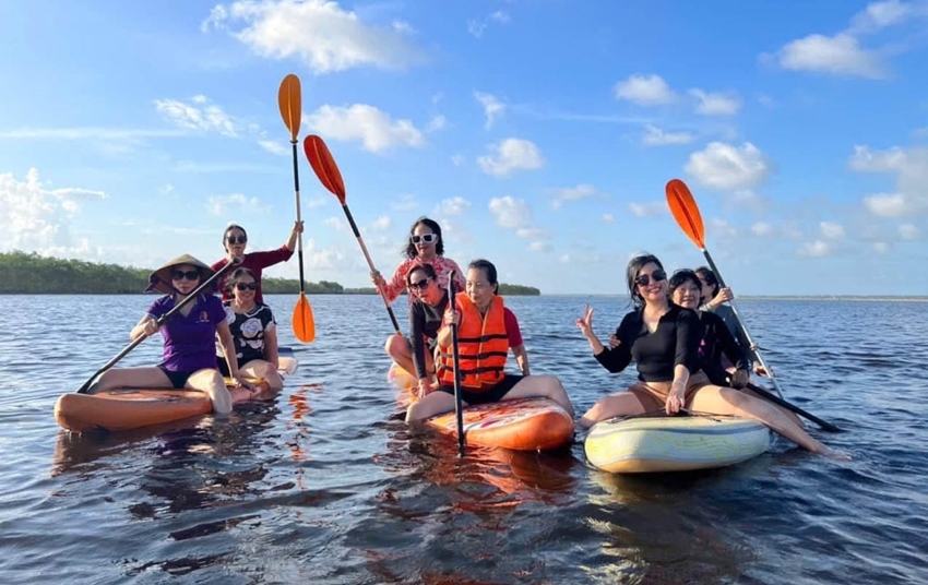 | Tourists experience ecotourism at Tam Giang Lagoon. Photo: Hien Luong |