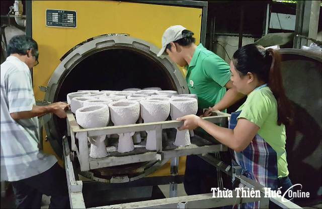 HNN.VN - While many other facilities in the bronze-casting guild of Phuong Duc Ward and Thuy Xuan Commune (Hue City) discharge waste into the environment, Nguyen Phung Son bronze-casting private enterprise has invested heavily in new casting technology with a mainly electricity based production line from process of mold making, to firing, and copper melting, promoting cost saving and polluted waste reduction.
