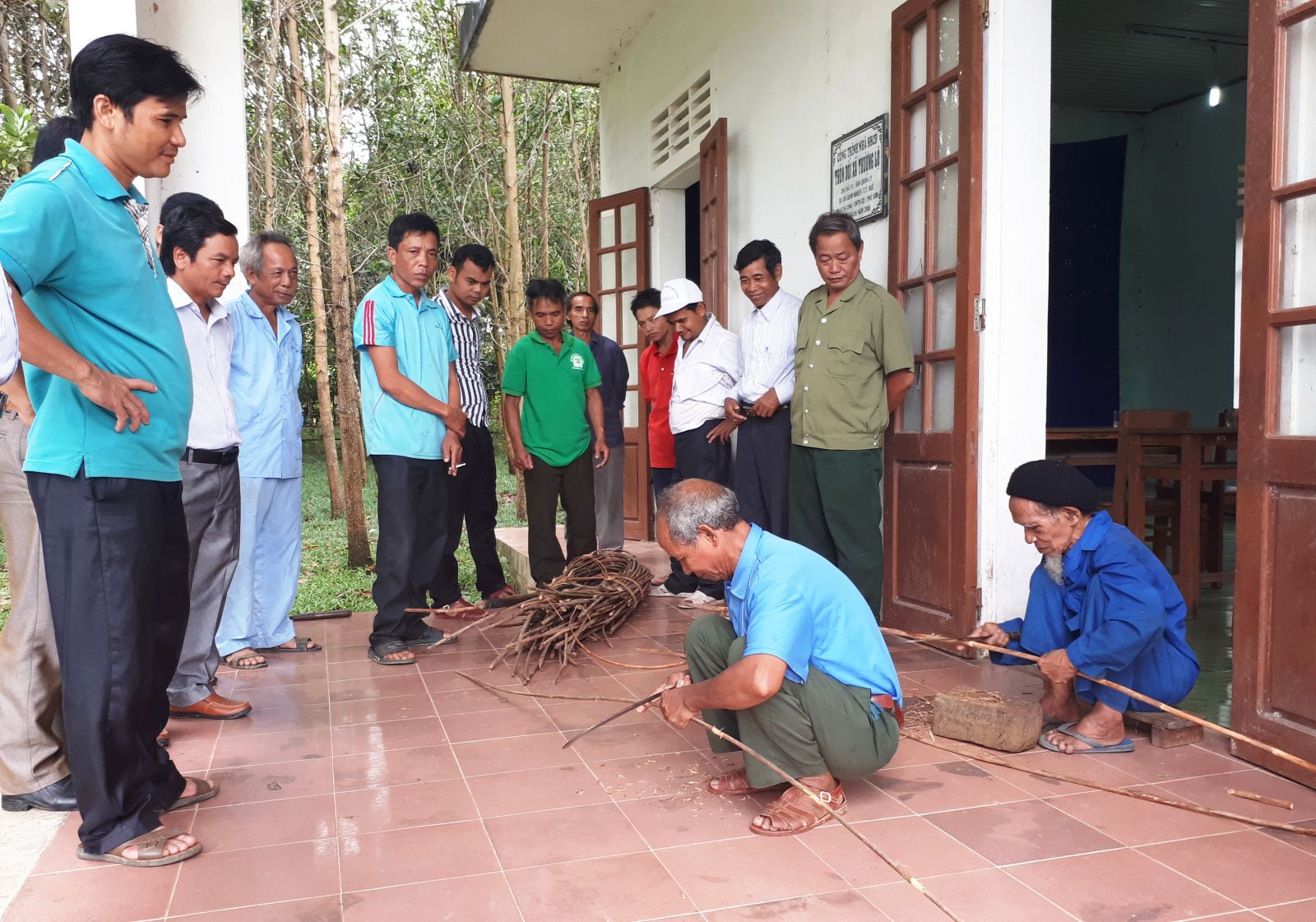 Over the course of 3 weeks, nearly 20 trainees who are youngsters of Co Tu ethnic minorities in Thuong Lo commune are taught by two artisans the skills in knitting techniques with cane, bamboo and rattan materials. The trainees will make daily living items and some items in traditional rituals. These products are currently valuable as they can serve the tourists, especially the foreign visitors.