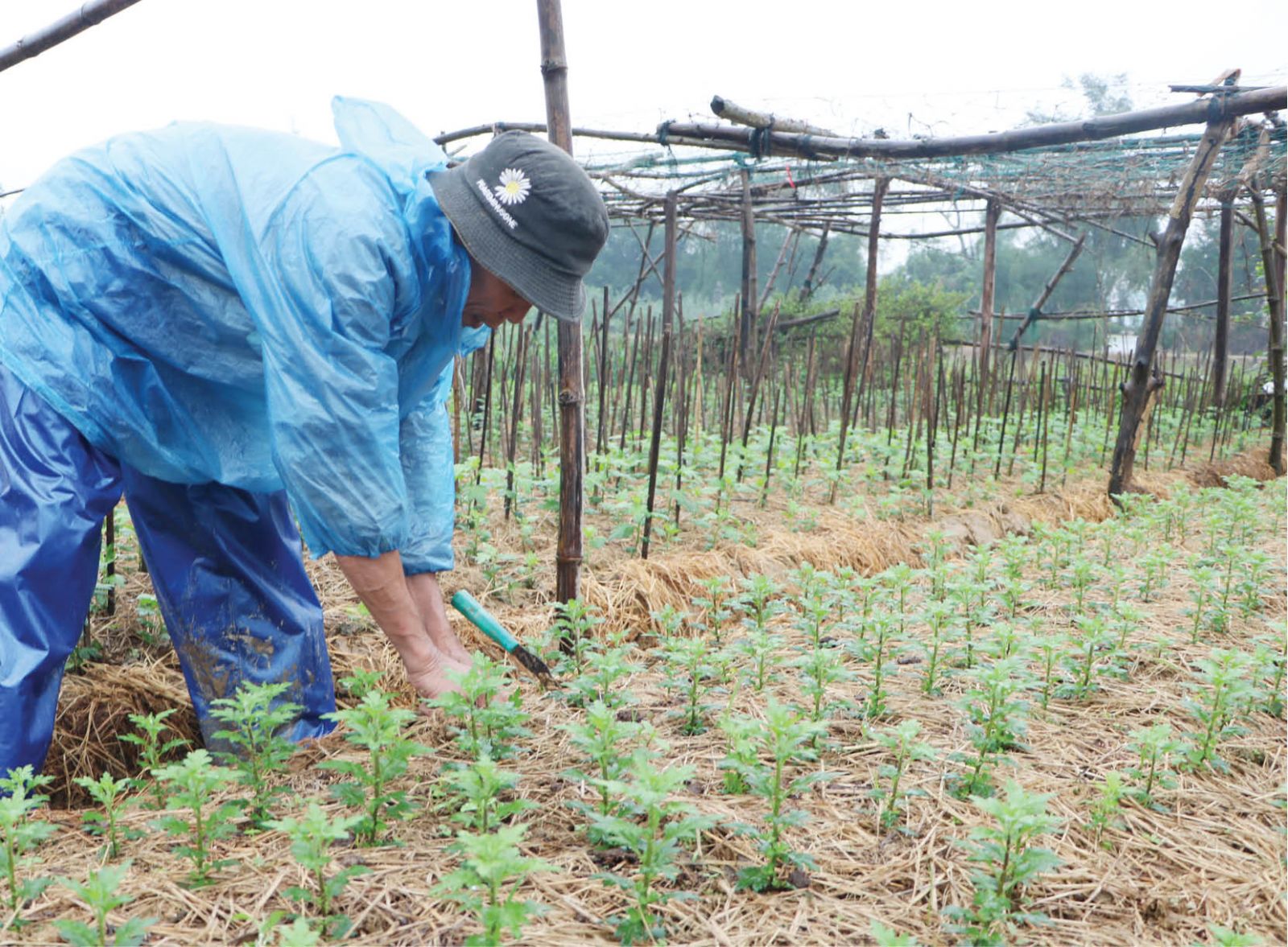 According to Phu Mau flower-growing farmers, the ruby chrysanthemum strain from Da Lat costs about 500 dong/root. Usually 15 - 17 thousand roots are planted on a sào (497m2). However, this year, owing to the anxiety over the impact of the COVID-19 pandemic on the labor force (lack of people to take care of plants) as well as the difficult output market, the farmers plant only 10 - 11 thousand roots/ sào.