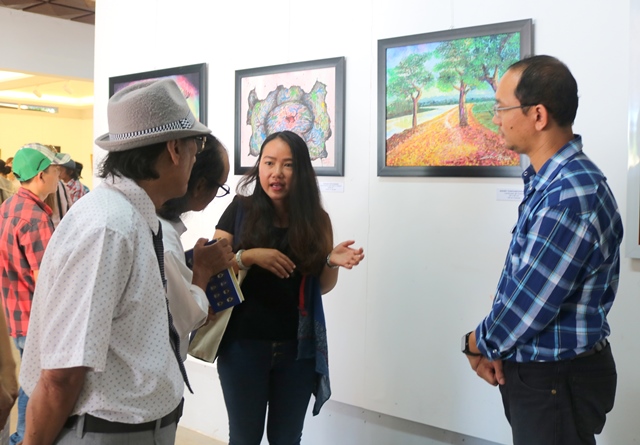 There were 23 Vietnamese and 13 Thai authors attending the exhibition. The art works showed variety in materials used and genres: acylic, oil painting, silk, graphics and sculpture, etc.