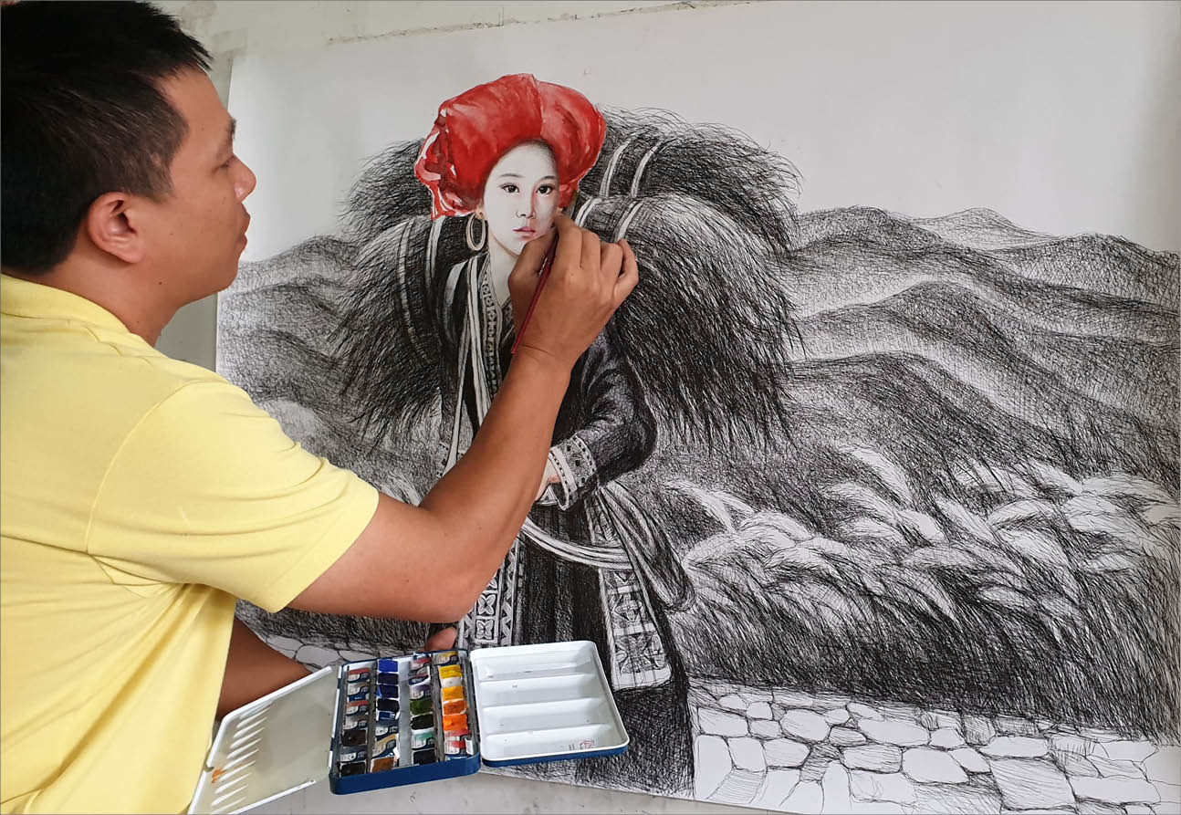The artist Nguyen Khac Tai has his own style in pen-nib art