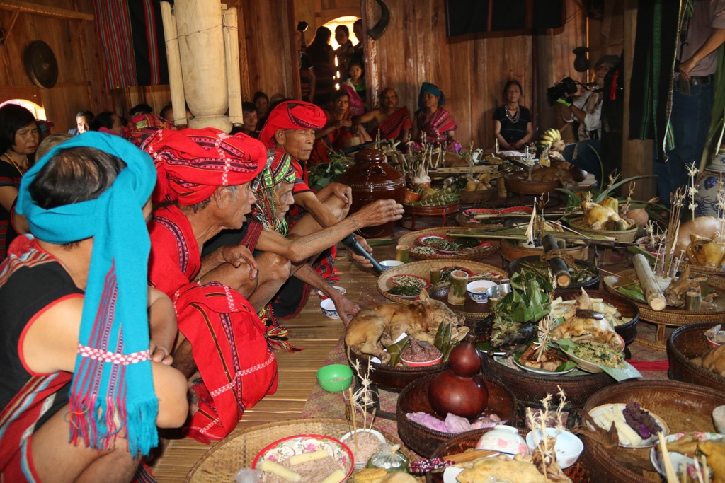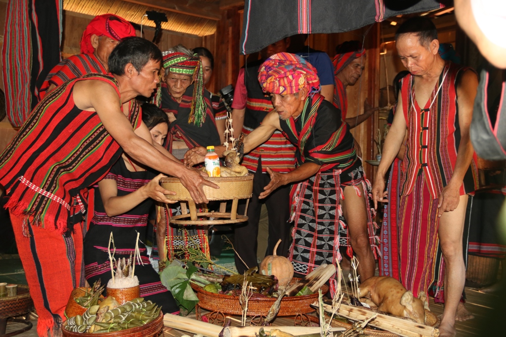 There are many rituals in the Aza Koonh festival: a xa a rah (purification ritual), Kâl laiq (chasing evil spirits ritual), Cha chootq (preparation ritual), Ka coong tro (inviting rice goddess ritual) , Aza ritual, Giang ritual (offering ceremonies for gods of rivers, streams, wind, clouds, fire, land, roads ...), Cha dooi ar beh (new meal ceremony), feast handover ceremony ...