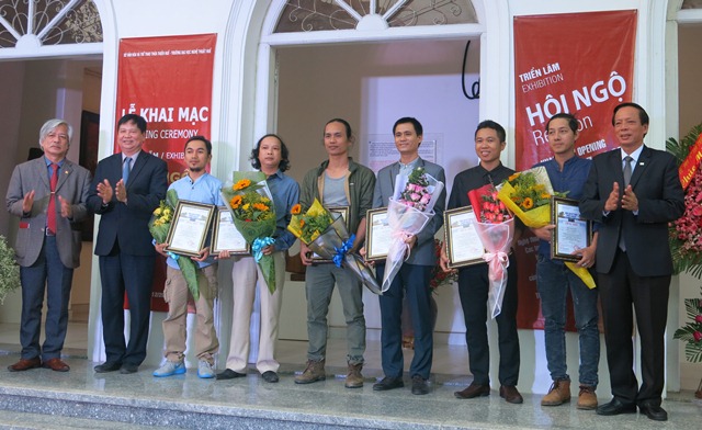 The Organization board presents flowers to artists giving works to the prospective Hue Art Museum