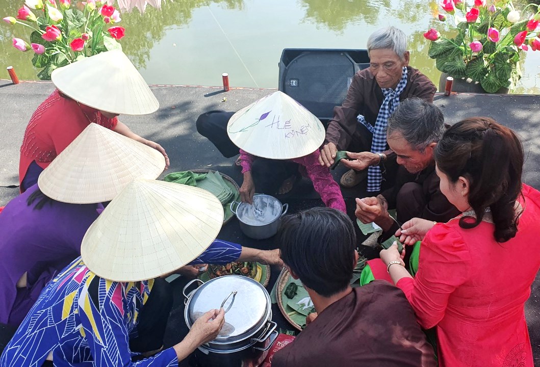The old farmers show their skill in the contest of making tapioca dumpling cakes, also known as the loc cakes