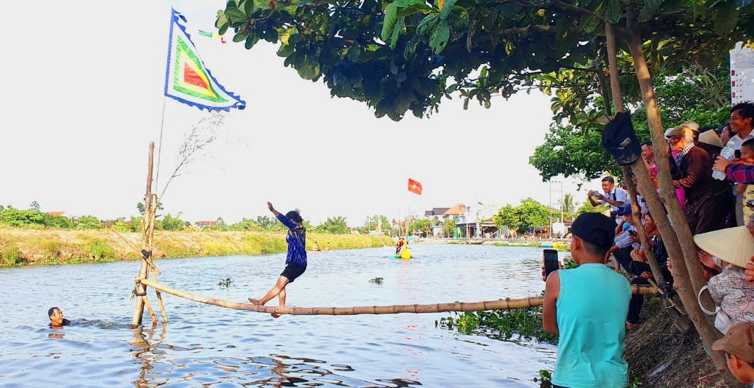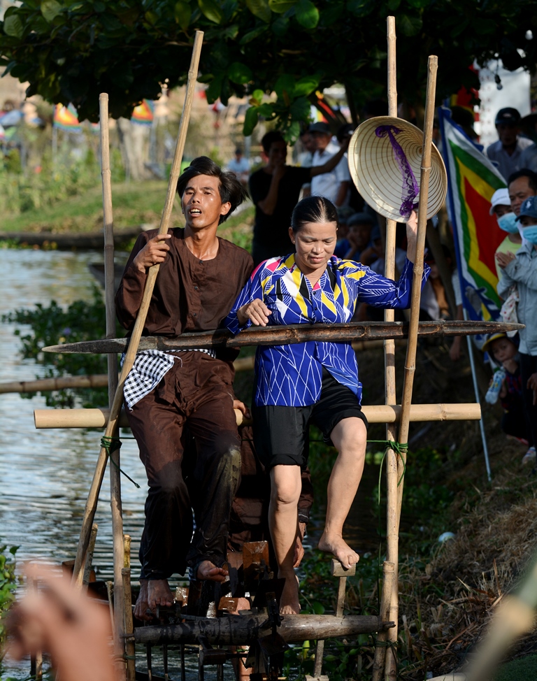 With the participation of farmers, who are not only kind and sincere, but also resourceful, skillful and witty, the program "Village having fun, village loving singing" is a competition that combines performances on stage, outdoor activities, and traditional folk activities including three contests: Traditional craft (making tapioca dumpling cakes, also known as the loc cakes); Village market singing (singing, reciting poems and chants, as well as pounding rice chanting, etc., which are live on stage); and The whole village having fun (participating in continuous games of pedaling the water irrigating trough, and crossing the monkey bridge).