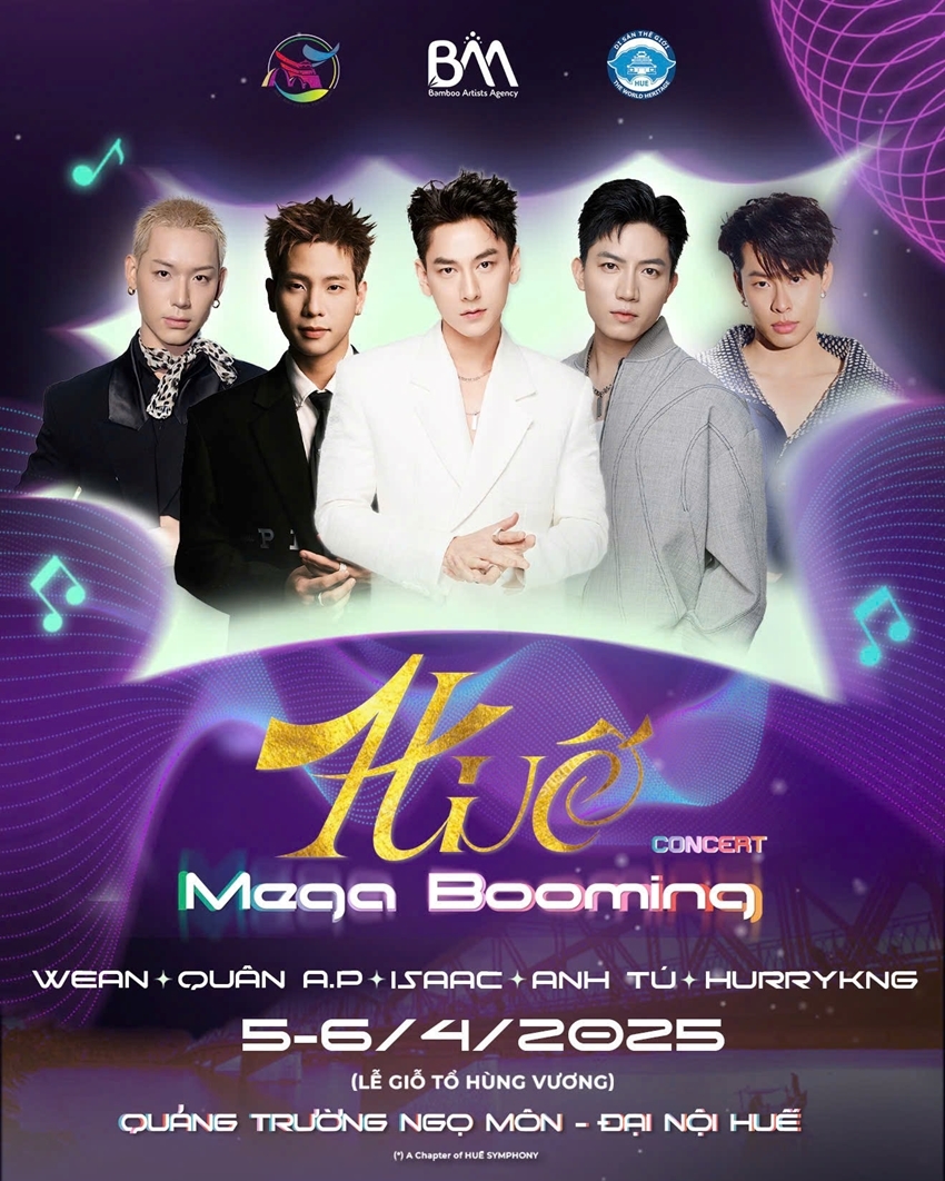 HNN.VN - The “Hue - Mega Booming” music festival will take place at Ngo Mon Square - Hue Imperial Citadel over two nights, April 5th - 6th, 2025 (coinciding with the Hung Kings’ Commemoration Day). The event will feature many young singers, with a special highlight being the appearance of the “Anh Trai Say Hi” (Say Hi with Bros) lineup - a well-known reality TV show about music.