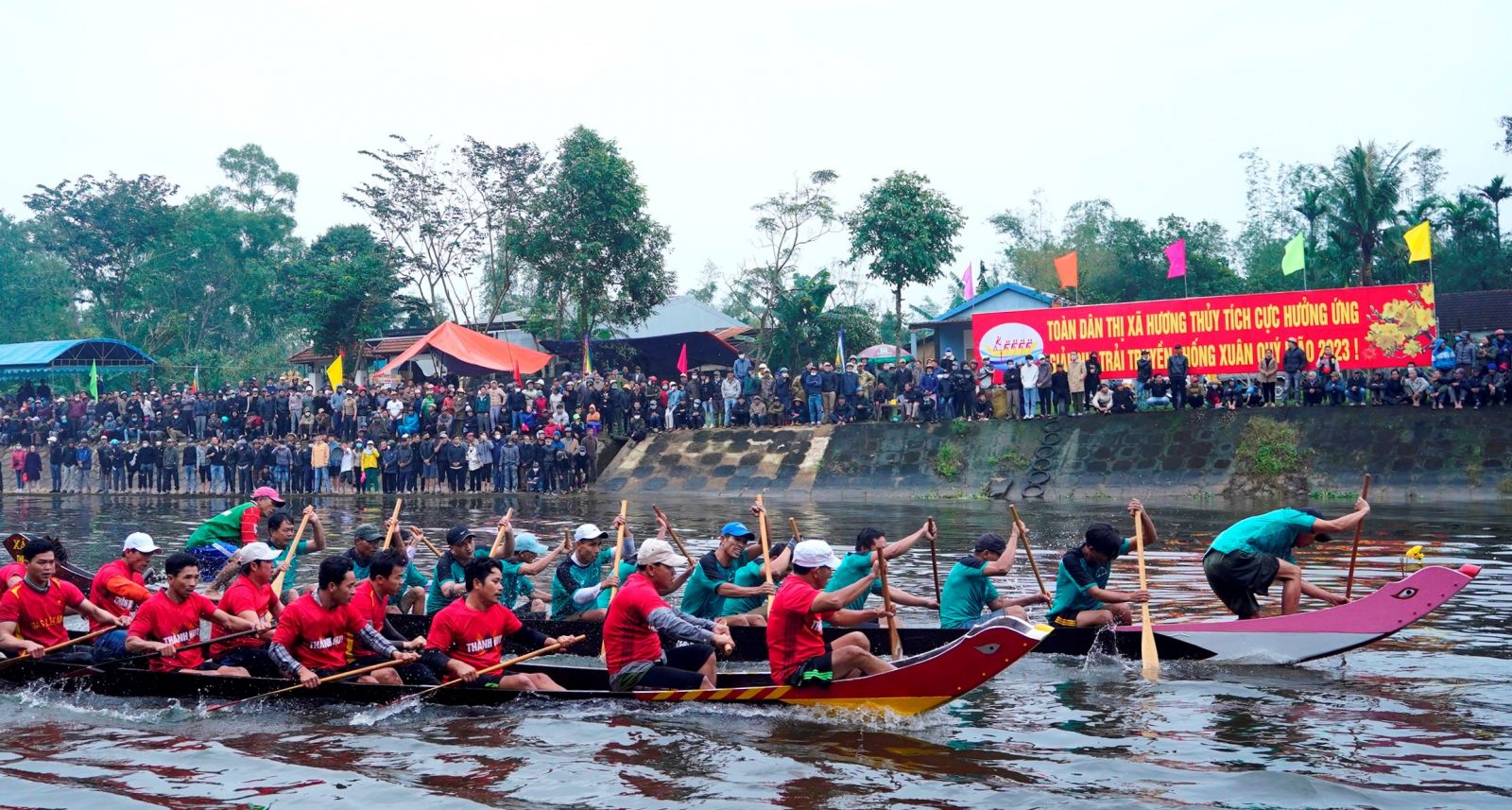 “In addition to the meaning of praying for favorable weather, bountiful crops, and peaceful homeland, the return of the spring boat race on Vuc River has an important meaning in restoring, preserving and promoting local traditional sports and cultural festivals; thereby, tightening the spirit of solidarity and emulation in the movement of physical training and productive labouring, contributing to building Huong Thuy increasingly rich and beautiful,”, said Ms. Ngo Thi Ai Huong - Vice Chairman of the People's Committee of Huong Thuy town.