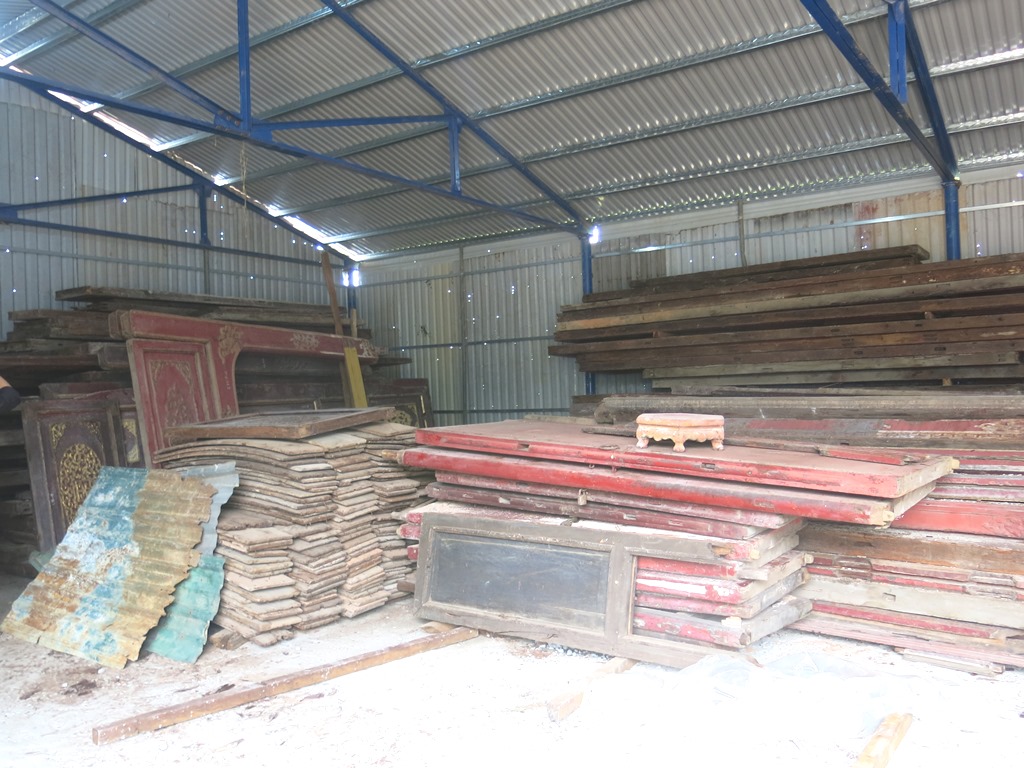 The wooden pillars being replaced with second-grade wood such as ironwood and pine wood