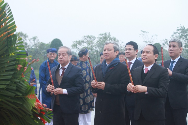Provincial leaders lighting incense at the National Hero Memorial of Quang Trung - Nguyen Hue
