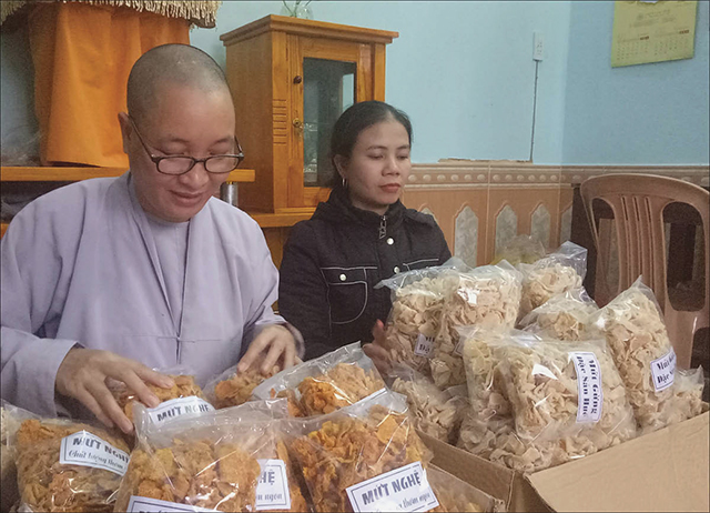 “We realize that it is very dangerous for people to use unsafe products, so we decided to make the products by ourselves to serve people at Tet, helping people have safe, good-quality products at a low cost,” said nun Lien Nha.