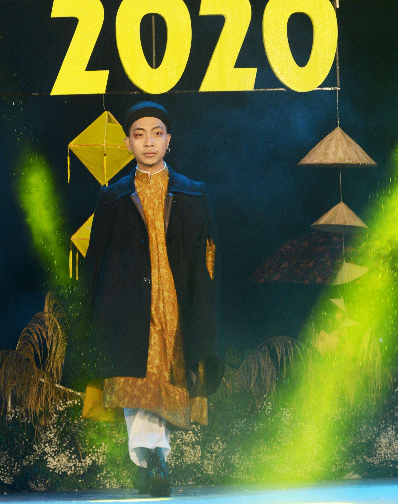 The designer Tran Thien Khanh brought the "Four Palaces" collection which was inspired by the Vietnamese ritual of practicing the beliefs of worshipping “Mother” Tam Phu, honored by UNESCO as a representative intangible cultural heritage. On the basis of the idea of this religious ritual, motifs of mountains, rivers, lakes, temples, and landscapes of the Nguyen Dynasty are meticulously and delicately expressed on various materials: brocade and silk.