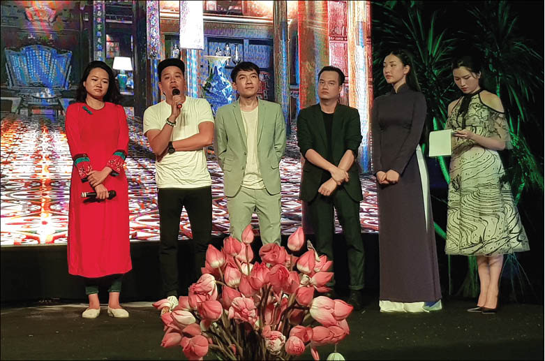 Director Buu Loc (2nd from left) in a film introduction ceremony to promote Hue at Boi Tran's garden. Photo: T. NINH