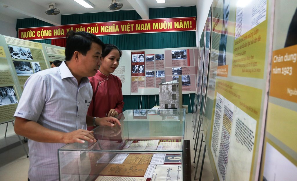 A corner of the exhibition space on the theme of “Người đi tìm hình của nước” ("The person who searched for the shape of the nation")