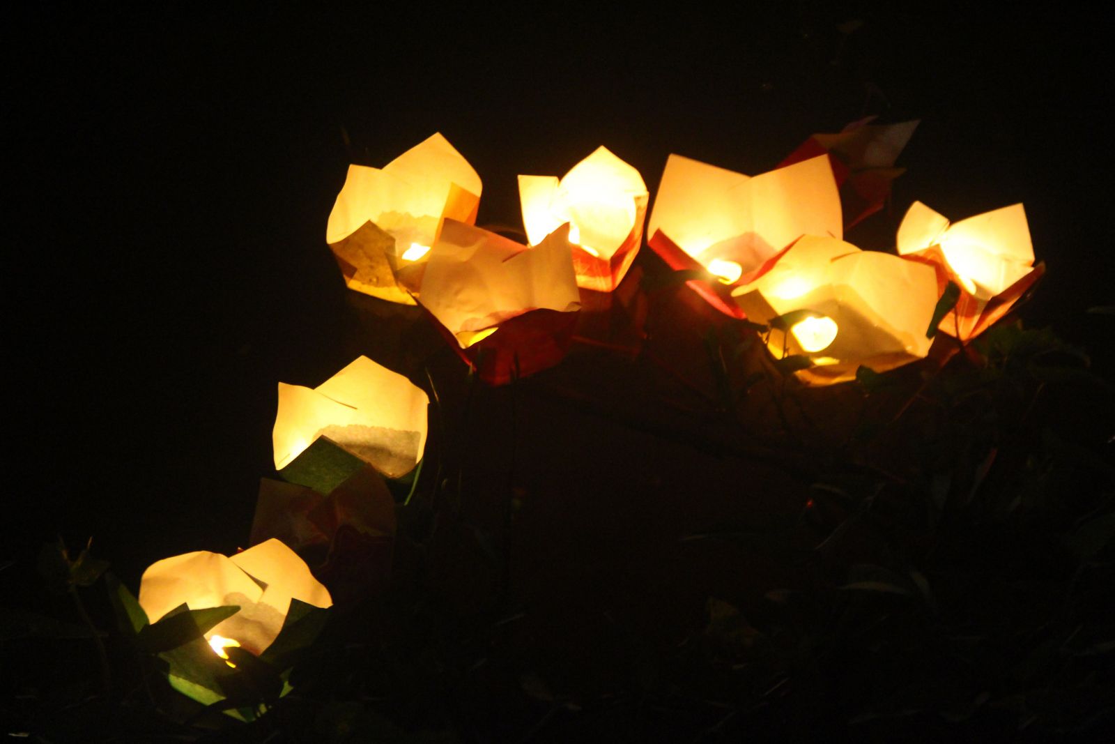 Before the ceremony of dropping flower garlands and colored lanterns, rituals of blessing and prayer were conducted