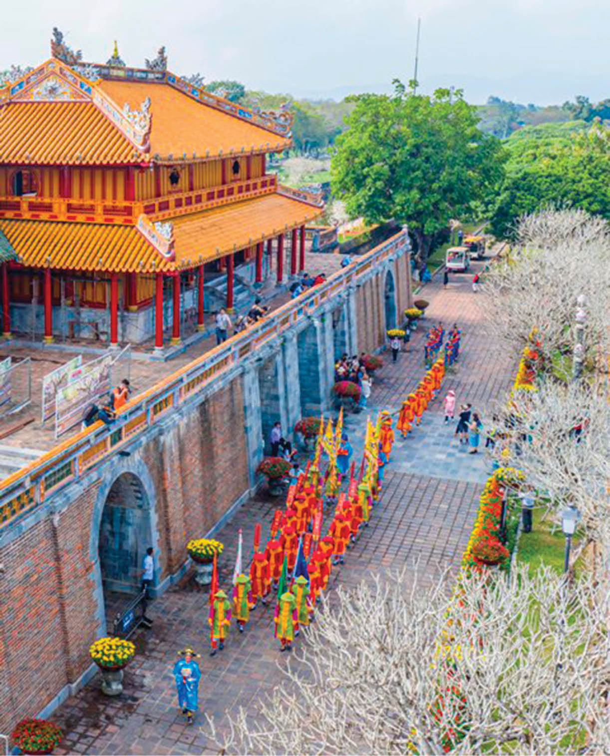The bamboo procession during Lễ Dựng Nêu (the Lunar New Year Pole Erection Ceremony) at Thế Miếu (the temple to worship the kings of the Nguyễn Dynasty)