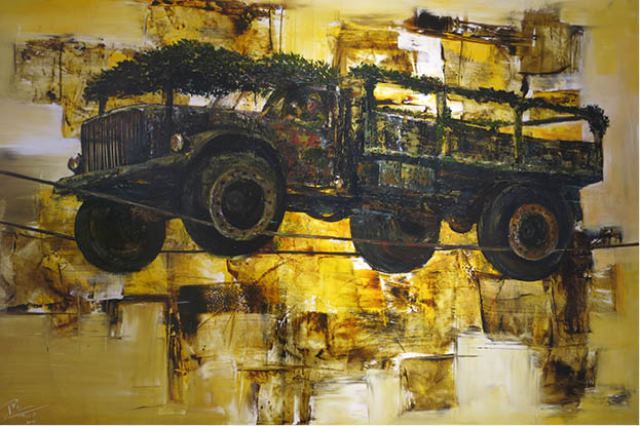 With regards to the nation’s revolutionary war, artist Hoang Thanh Phong’s work "The thrilling car trips" successfully evoked strong emotions in the public. The image of a car overcoming bomb fires was a reminder of such difficult wartime against the American. The enemy destroyed the roads, so the car tires had to be deflated so that the car could run on steel wires to timely transport goods to the battlefield. The image of a flat-tire car on the road revealed such a harsh reality of the war, as well as the determination and strong desire for victory of the whole nation.