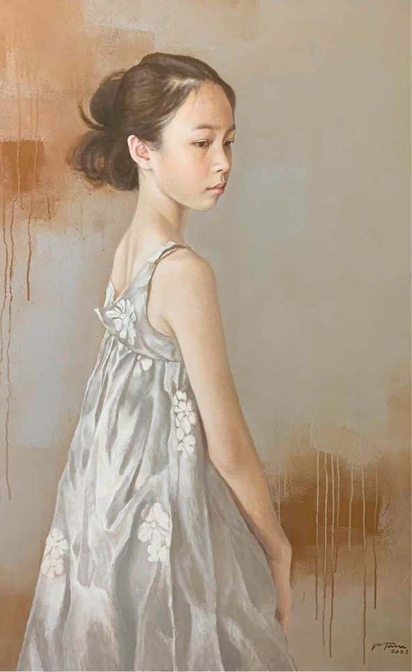 Vu Duy Tam's acrylic painting "Girl" touches the viewer’s heart with his mature classic techniques. His style is not to show, but to express his profound feelings. The painting gets across his message about peacefulness in chaotic life.