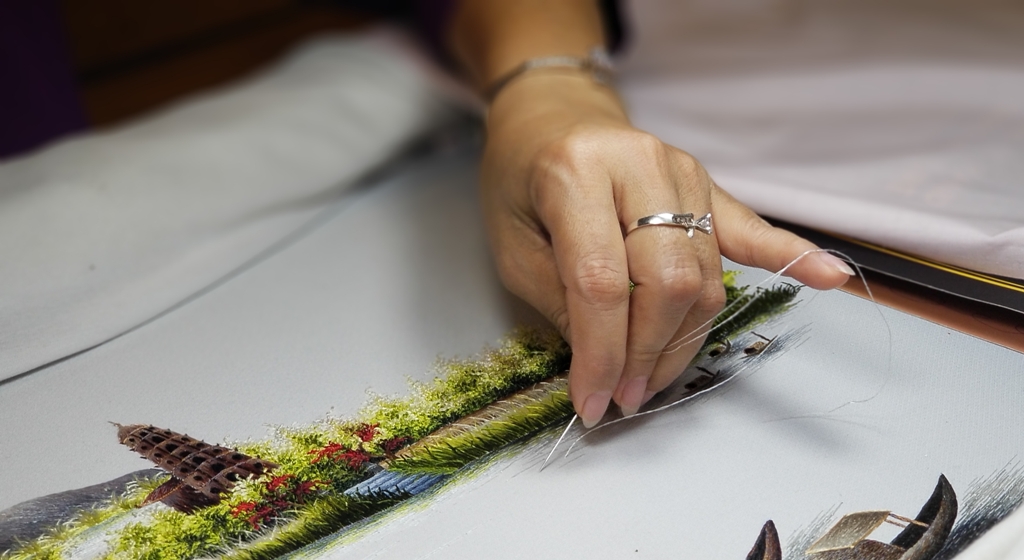 Pictures made by the embroidery artisans make the viewers fascinated