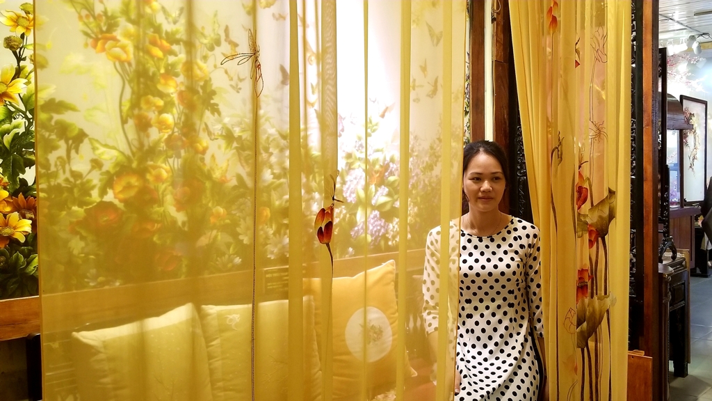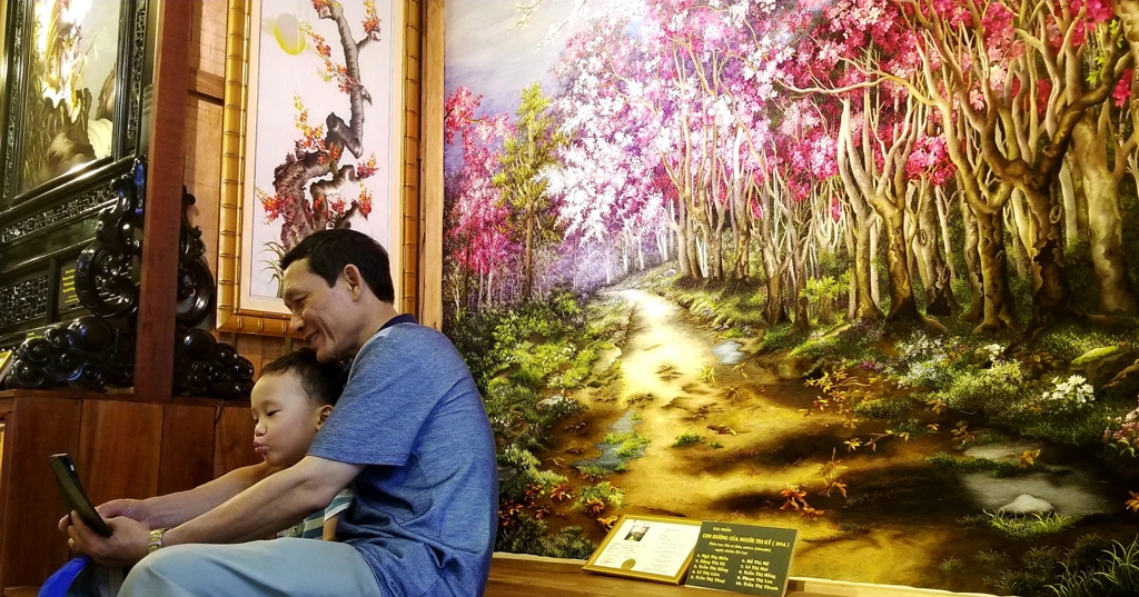 “Instead of arid documents, when we come here, we are told a story about the embroidery craft via the works. The exhibition space here makes people seem to be lost in the maze, as there are a lot of sophisticated, eye-catching, and skillful works made by the embroiderers. In addition, we also have the opportunity to experience the craft right here,” Nguyen Viet Linh (a visitor from Da Nang City) shared.