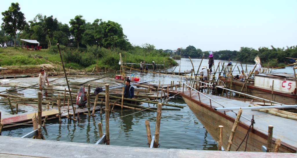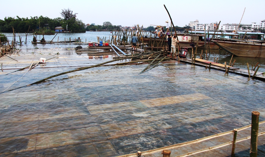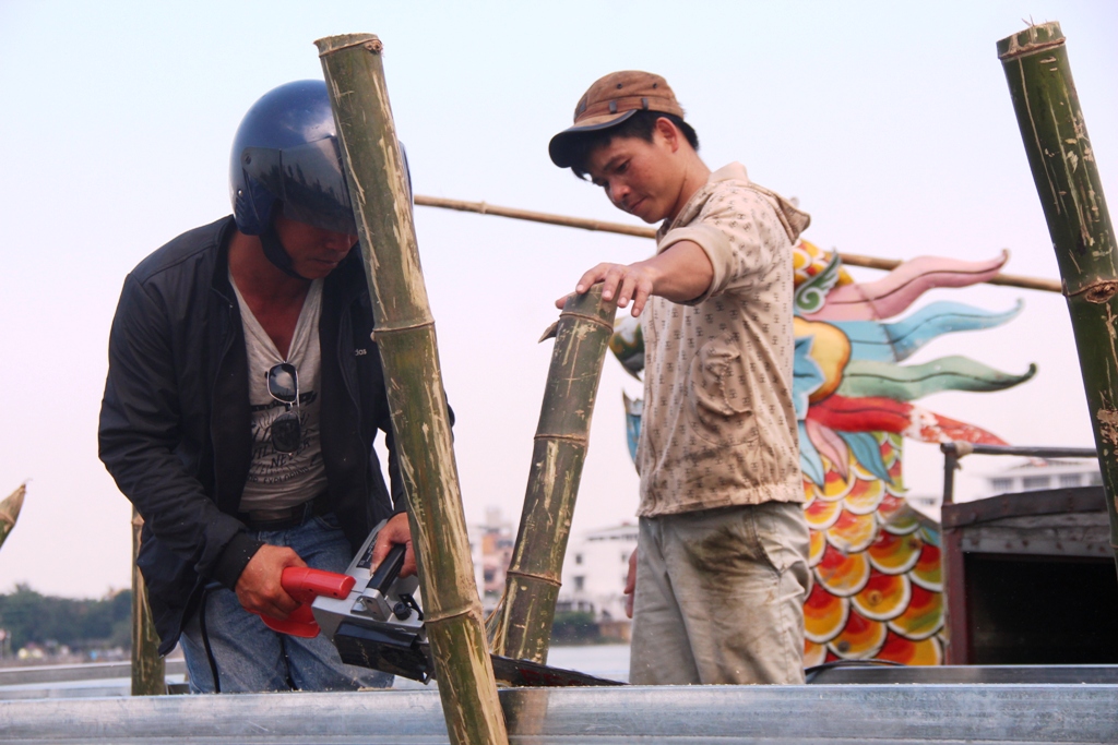 According to workers who build this stage, the hardest thing is to drive bamboo poles into the riverbed. In addition to those over the water, bamboo poles are also set up under the water to ensure the firmness of the stage and safety for performing artists. Additionally, two barges are anchored on the two sides of the main stage to support it.