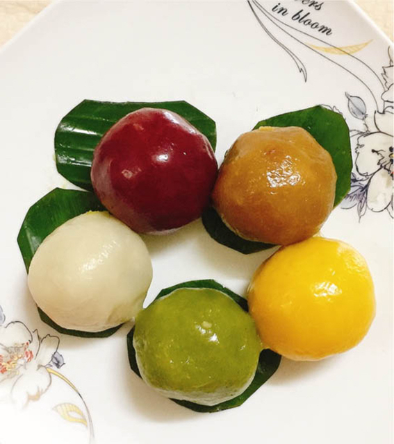 Mom's five-colored banh it look too beautiful to eat. The outer layer is soft and chewy. The filling is good and fragrant of scallion. The pork gives a fatty taste. It is so good beyond description.