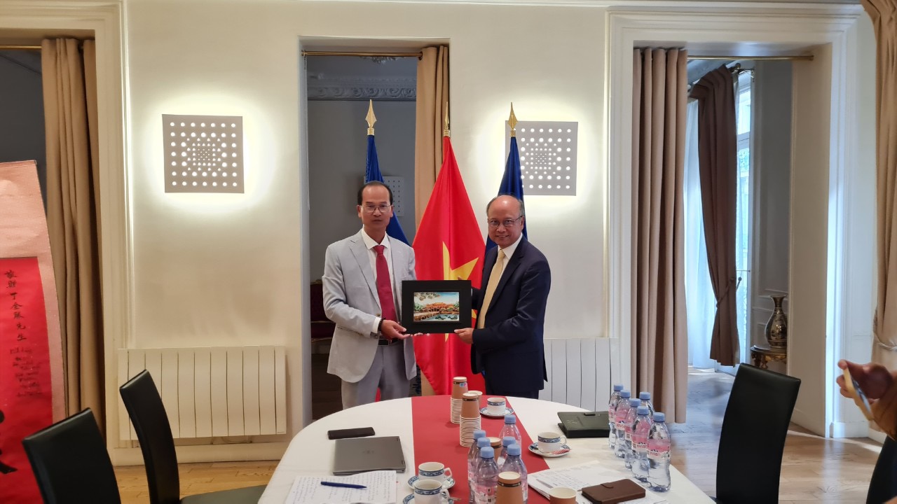The delegation had a meeting at the headquarters of the Vietnamese Embassy in France. Ambassador Dinh Toan Thang received the delegation. Also, attending the meeting were Ambassador Le Thi Hong Van, Head of the Permanent Delegation of Vietnam to UNESCO and the Embassy staff.