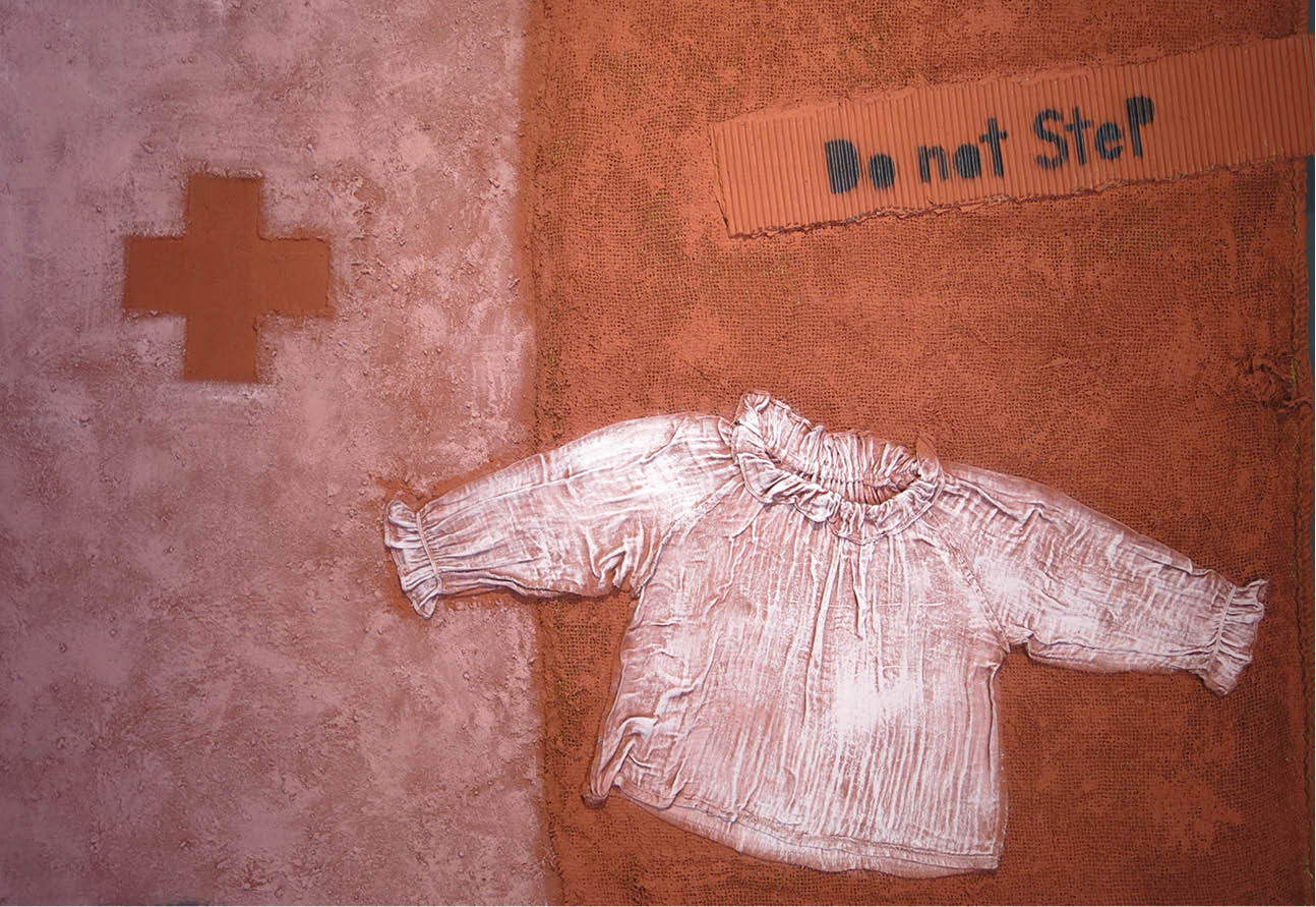 His toss and turns and concerns about life can be seen through his touchable works such as “Breaking,” “No Treading,” “Childhood,” “Ruins,” etc. Through his paintings, one can recognize concerns and miseries but behind them are hope and belief expressed by colors or his handwriting symbols.