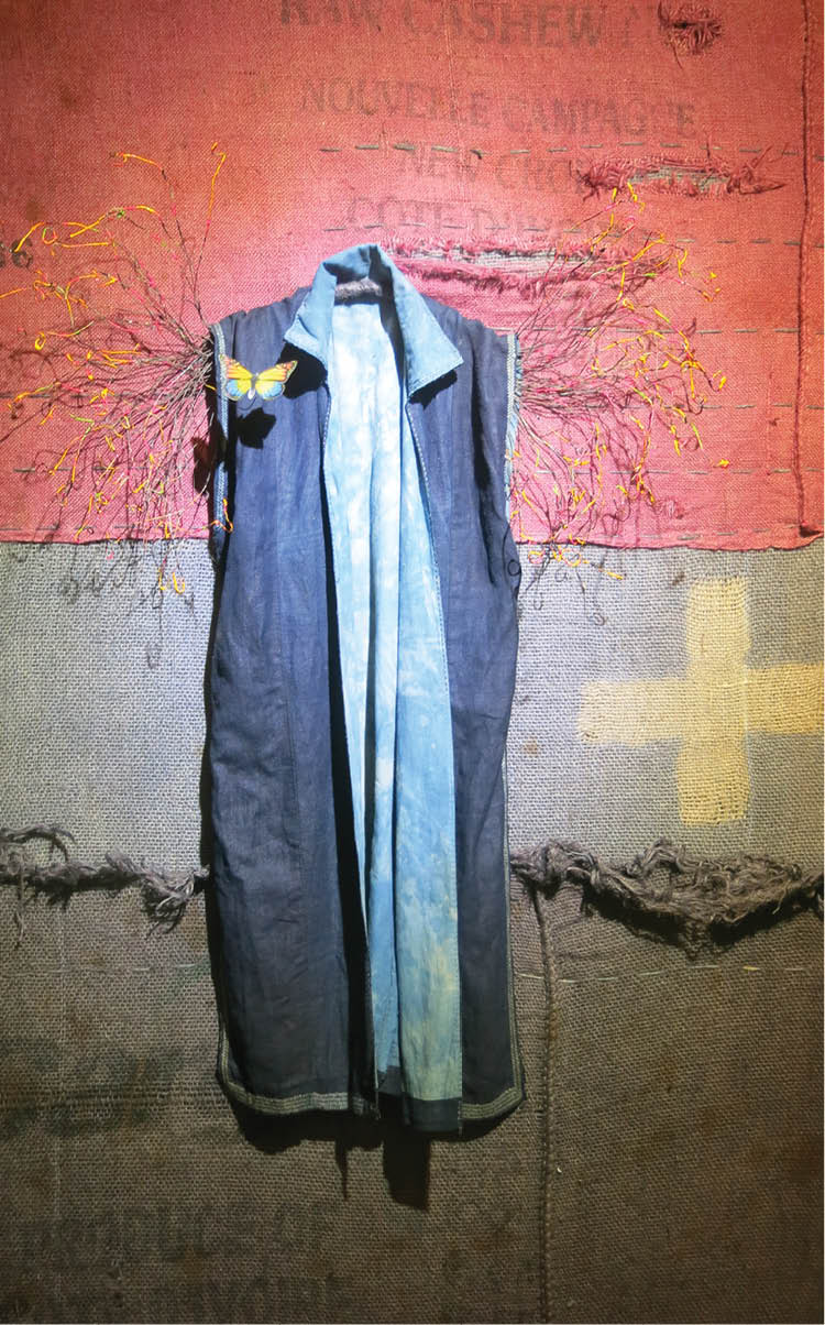 Working with wood, iron, burlap, earth, etc., he felt emotion in them. He then brought them to his paintings. Nghiem’s paintings are made of common materials and thrown-away ones which he collects, then combines to his thinking.