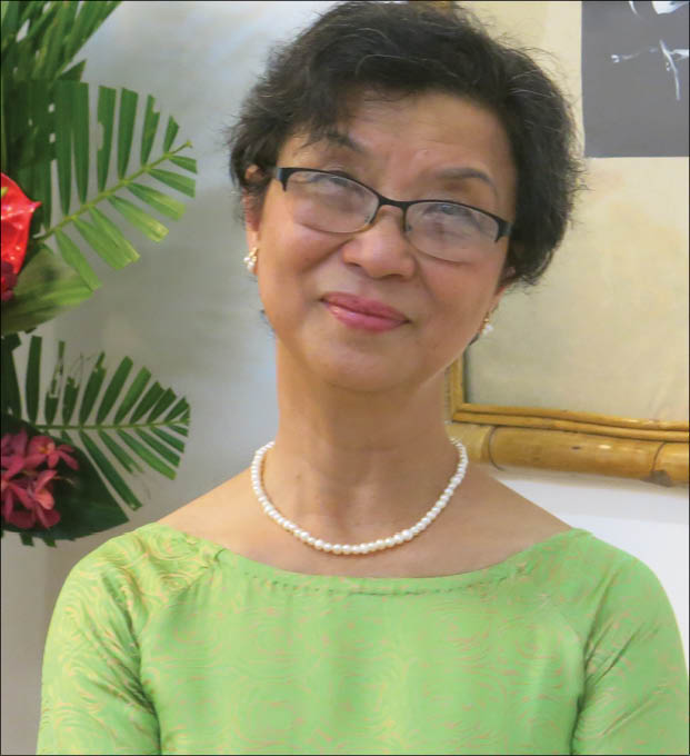 Nurturing the passion from the early days of being a Dong Khanh schoolgirl, Hoang Thi Ngoc An found ways to learn silk paintings and sketching portraits with two painters, Nguyen Dong Son and Nguyen Thi Tam. Since the time in Hue, Ngoc An has drawn only to please her affection. She is also interested in embellishing silk scarfs with her artistic lines.