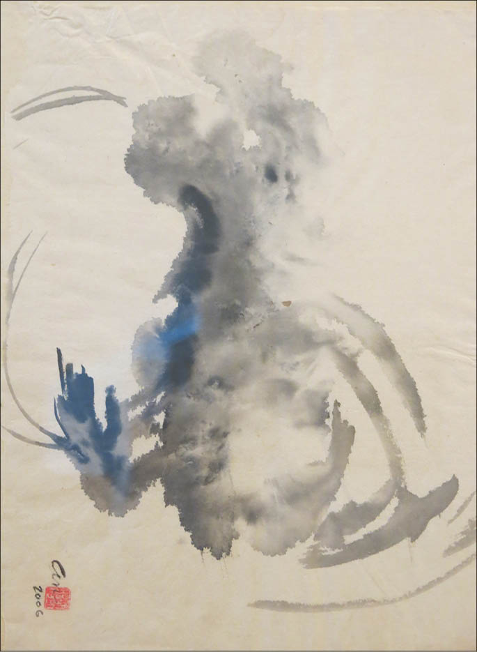 Meditation, invocation, dream, return, traces or dance and phoenix rebirth ..., featuring the fragile beauty of women, are evoked by the sketchy lines made by paintbrushes, color and water, together with a unique use of contrast between dark and light areas.