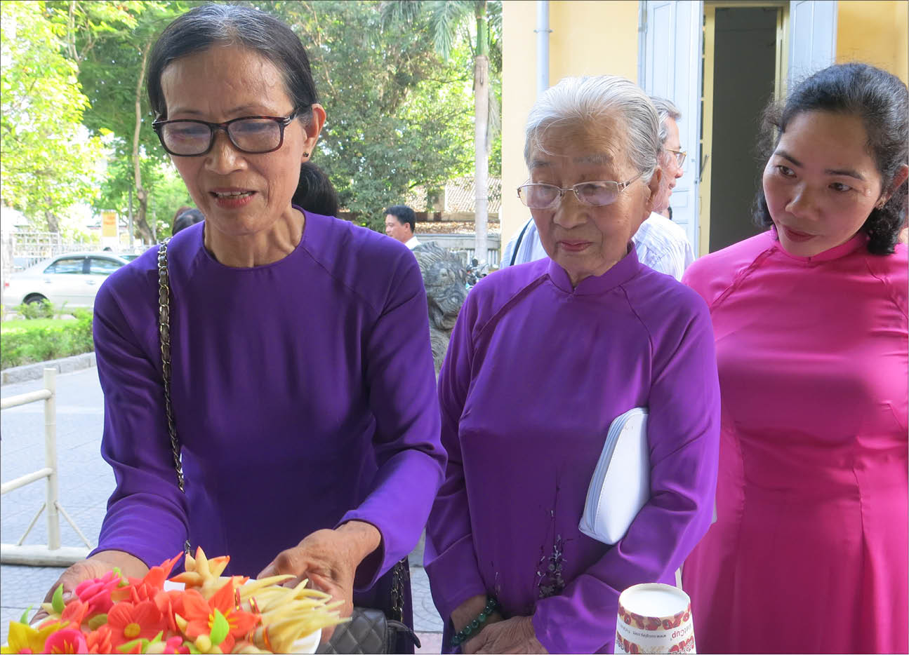 Ms. Ho Thi Kieu (left cover) is presenting banh bong cay (blossom cake)