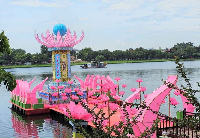 | The area for Flower Lanterns Festival on the Perfume River passing through Nghinh Luong Dinh Pavilion. |