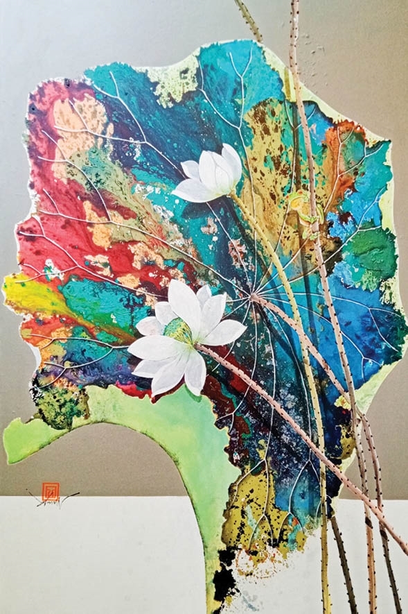 My paintings are my sincere emotion to my hometown. Through my paintings of lotuses, I want the viewer to lean toward the truth, the kindness and the beauty.