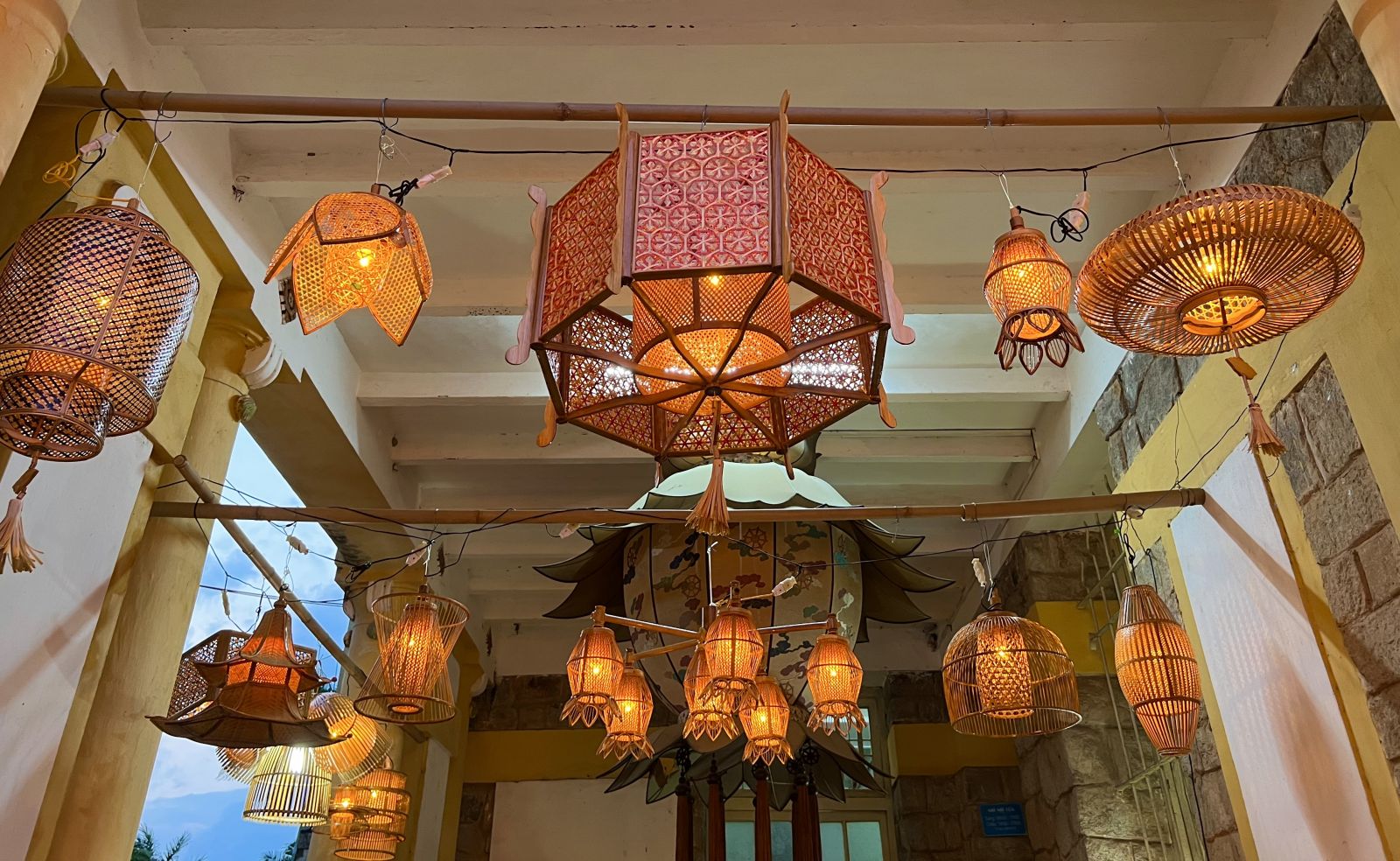 Bamboo plaited lamps - new products of Bao La bamboo knitting village. Photo: Nhat Linh