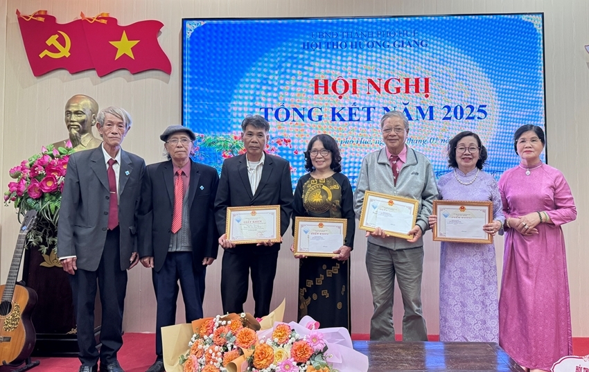 Alongside professional activities, the Association streamlined its organizational structure by consolidating its sub-associations. At present, it comprises two sub-associations and Hue Haiku Poetry Club. Over the past year, the Association celebrated its 45th anniversary (1980–2025) and received a certificate of merit from the Chairman of Hue City People’s Committee.