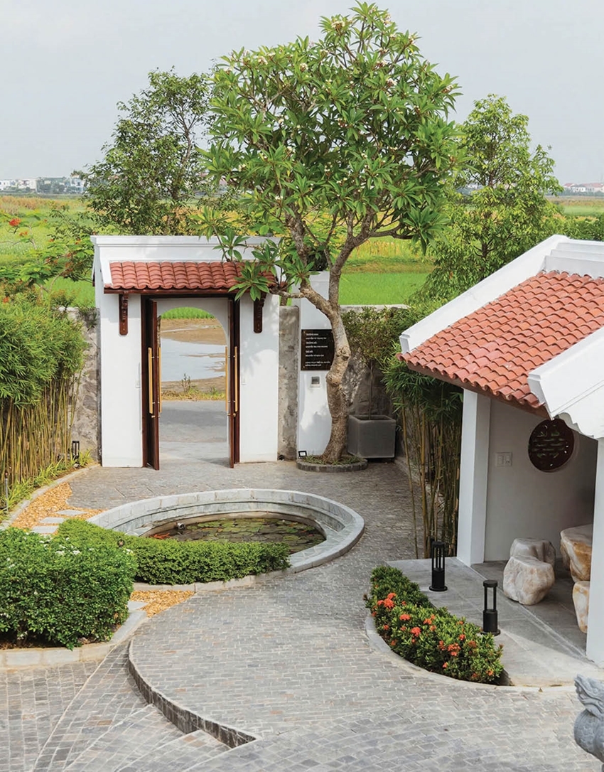 | The path leading from the gate symbolizes a river, the central image of the song “Khuc hat song que” (“Song of the countryside river”). Photo: Nguyen Vu Trong Thi |
