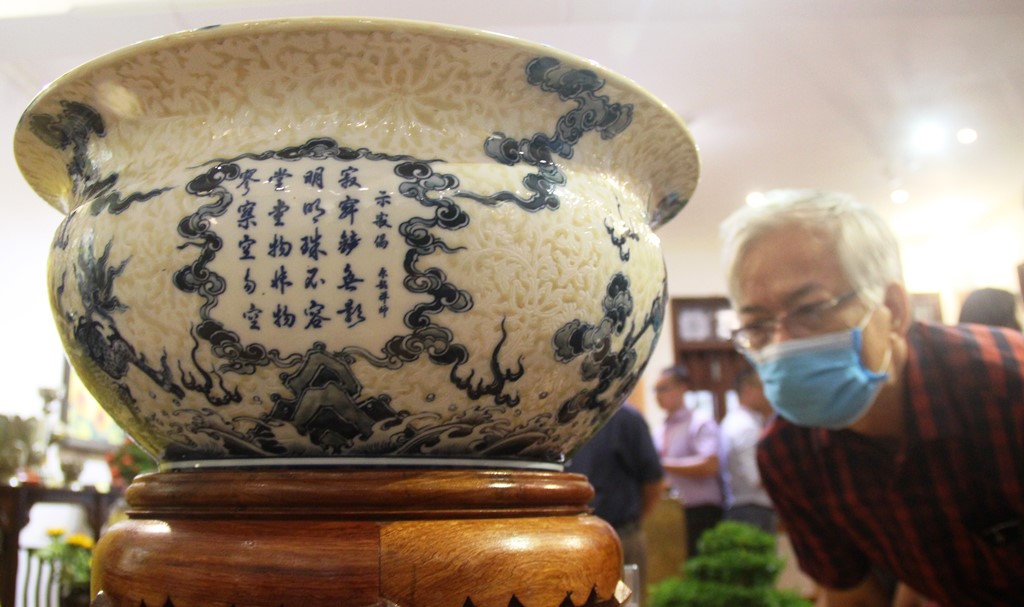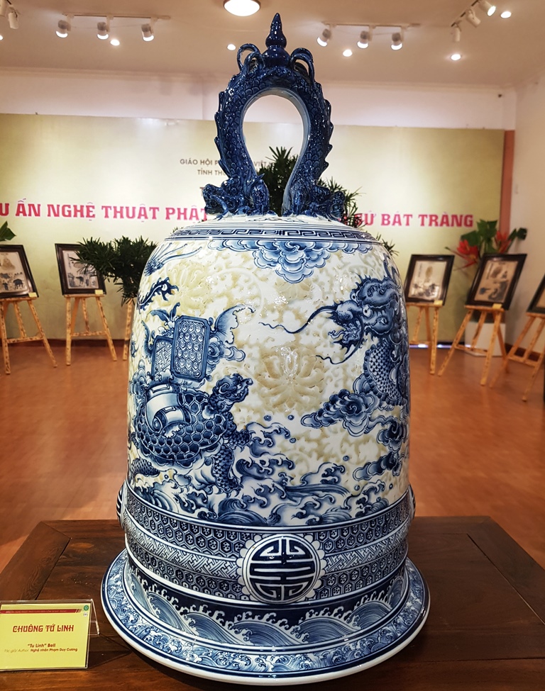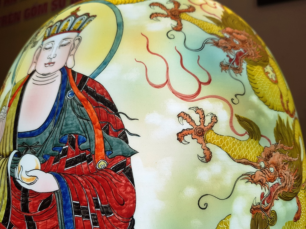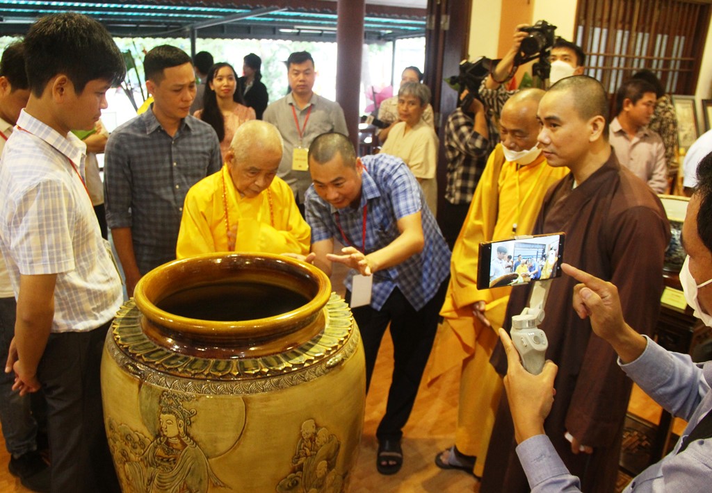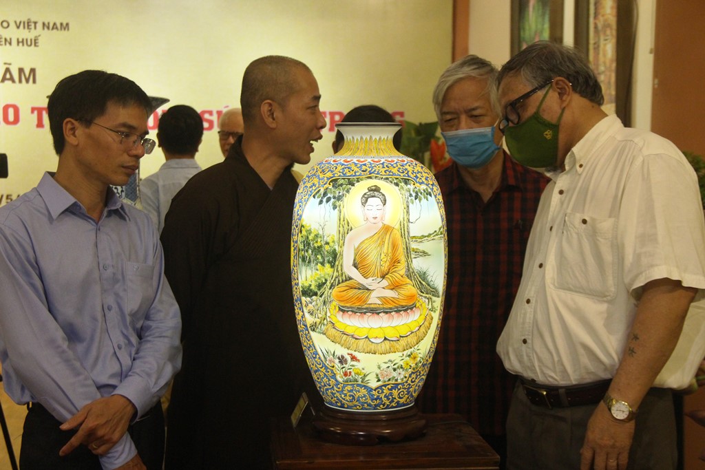 Right after the ribbon cutting ceremony to open the exhibition, a large number of monks, nuns, Buddhists, guests and visitors have come to visit. Each Bat Trang ceramic work is skillfully made by artisans from this ceramic region, and adapted from the original with historical, cultural, and artistic valuesof Buddhism, etc. Among these ceramic works are the statues of Buddha, Bodhisattva, Arhat, Patriarch, as well as the dharma tools for worship, glazed terracotta jars, vases, plates, transparent porcelain lamps, lotus flowers, and paintings of herding buffaloes.