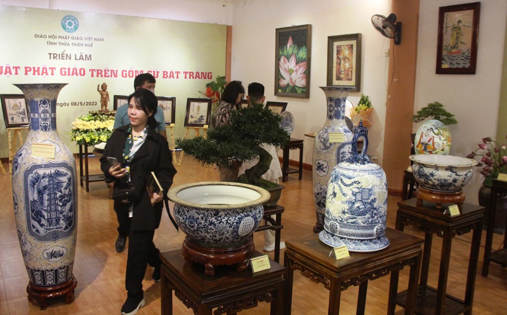 These ceramic artifacts are being displayed in an exhibition with the theme of "Imprints of Buddhist art on Bat Trang ceramics". The event has just been opened by the provincial Organizing Board of Buddha's 2566th birthday on the afternoon of May 8, at Lieu Quan Buddhist Cultural Center, Hue (located on Le Loi Street, Hue City).