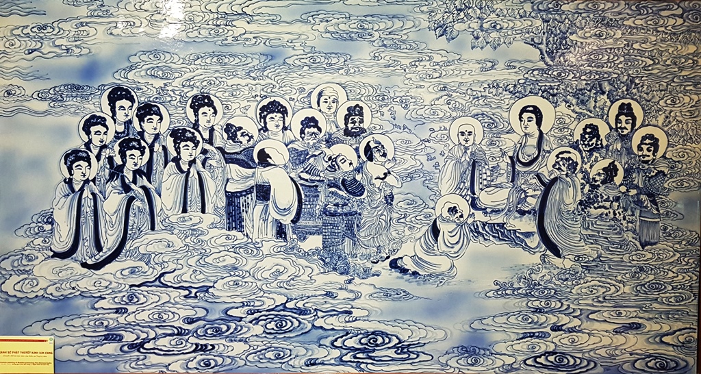 A porcelain painting, made by Bat Trang artisans, with the content about Buddha indoctrinating “Diamond Sutra”