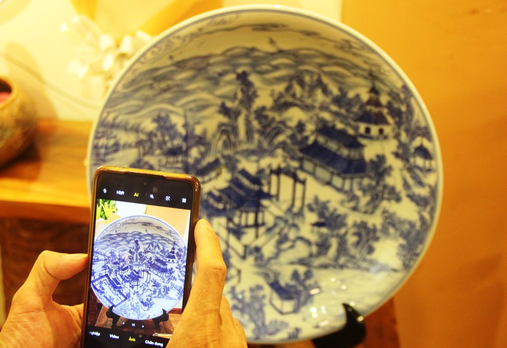 A porcelain plate depicting the landscape of Tuy Van pagoda