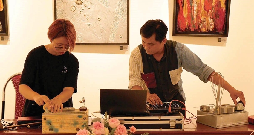 In her hometown, Nhan organized an art event themed “The Shape of Sound”, combining her experimental music with 24 lacquer paintings by her late father, the late artist Vo Xuan Huy. “When my father passed away, I chose to run away, not daring to face the pain and loss. Now, “The Shape of Sound” will be a mark proving that I have matured and can face what I once run away,” shared Hanh Nhan. Having found the interference between painting and music, the young girl affirmed that she had been on the right path in the art career she has chosen.