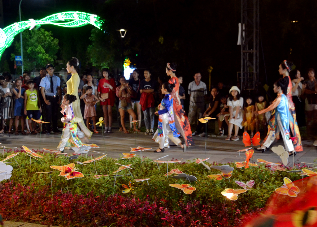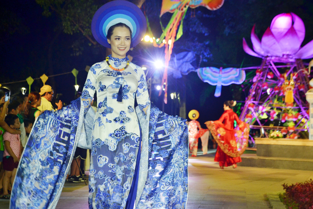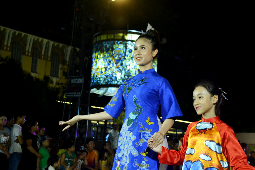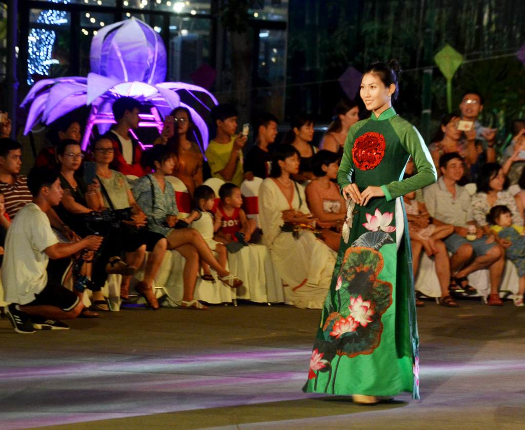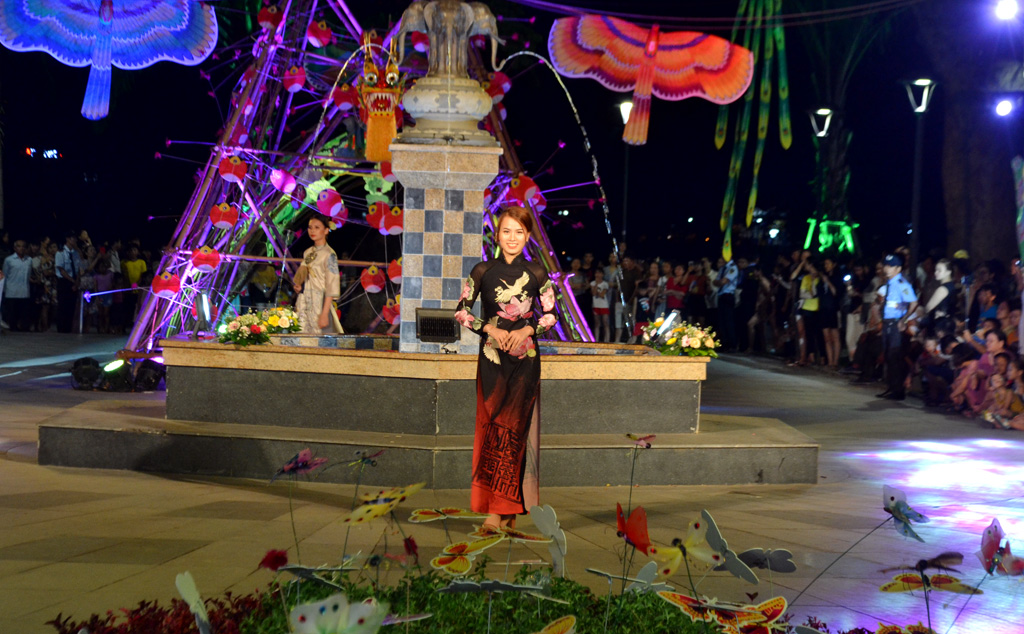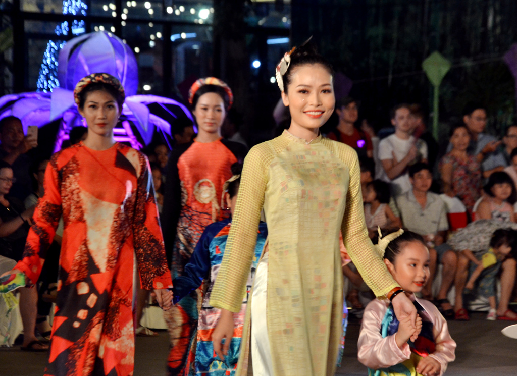 After the throbbing drums, the audience enjoyed nearly 60 ao dai with designs inspired by Hue kites of Viet Bao, the designer.