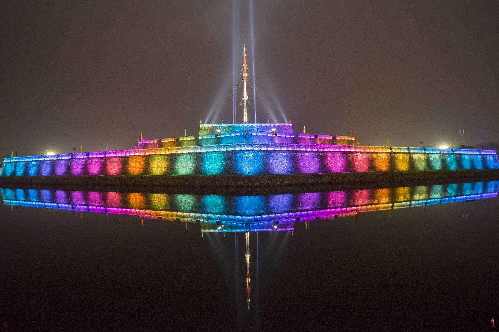 With the coordination of these two units, the Flagpole is lightened by 1,000 decorative led lights, creating the unique impression for Hue at night. This is an event of the "Hue - Brightening and Living" project (“Huế - Sáng và Sống”), invested by Vietravel and implemented with the coordination of Thua Thien Hue People's Committee.
