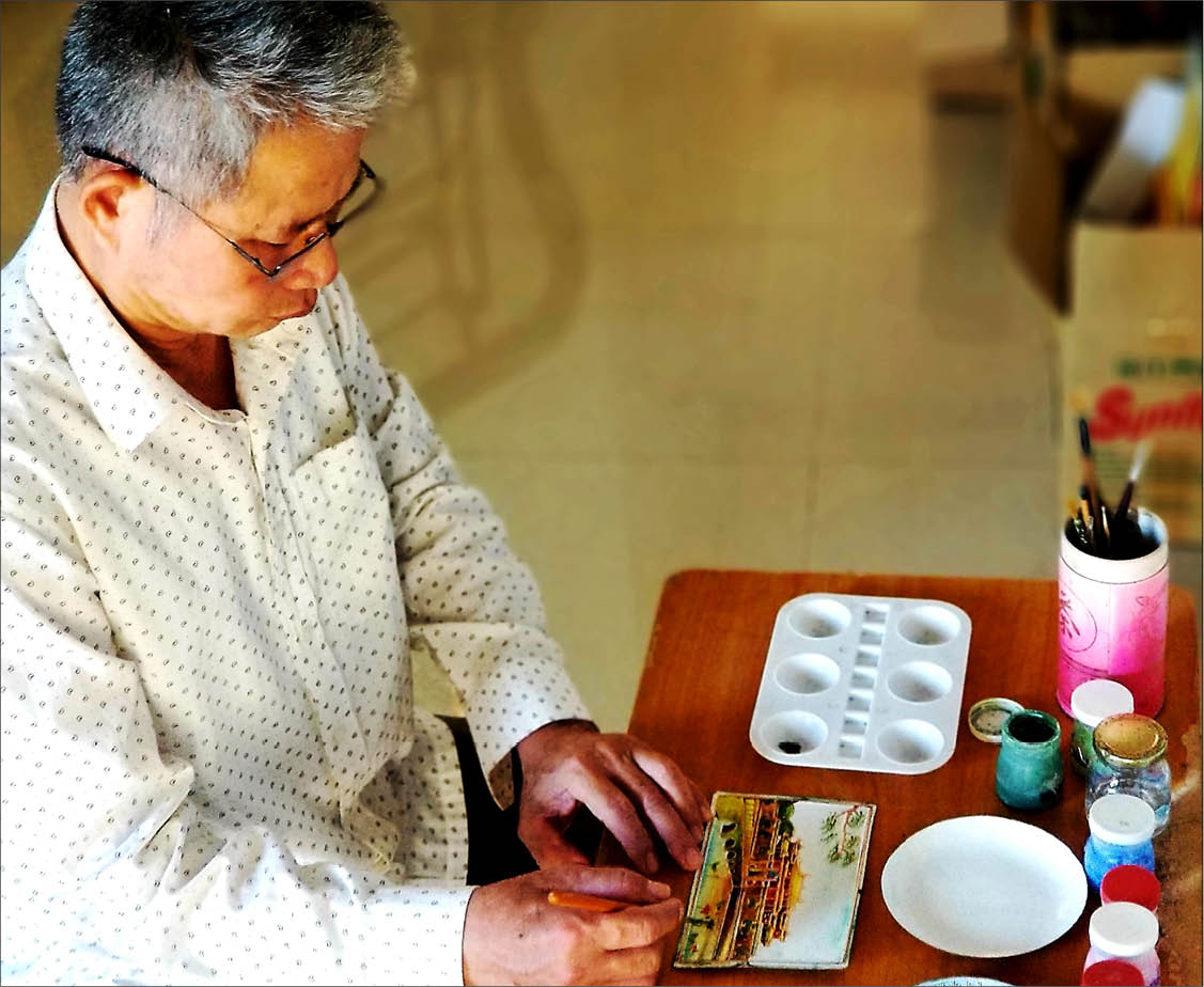 It was his home where he started his passion about ten years ago. At the time, tourists and local people were still unaware of Phap Lam enamel, and Mr. Dien was working as a doctor for a living. No one knows why he decided to quit his job to restart with the brush.
