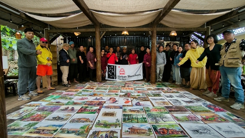 The program lasted for 5 days, and it had the participation of 40 members from Hanoi Urban Sketching Group, Hue artists, as well as artists and artisans from the ethnic minorities in A Luoi District